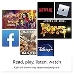 Stream or download your favorite shows and movies from Prime Video, Netflix, Disney+, and HBO. Enjoy your favorite content from Facebook, Hulu, Instagram, TikTok, and more through Amazon’s Appstore (Google Play not supported. Subscription for some apps required).