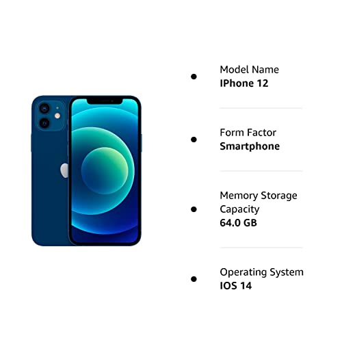 Apple iPhone 12, 64GB, Blue – Unlocked (Renewed Premium)
