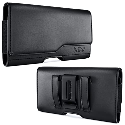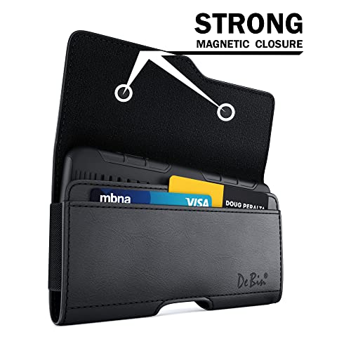 DeBin Galaxy S23, S22, S21, S20, S10, S9, A10e, A01, S21 FE, Cell Phone Belt Holder Case with Clip Holster Pouch Cover with ID Card Holder (Fits Samsung Phone with Otterbox Commuter Case on) Black