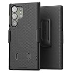The DuraClip holster set is an ultra-slim belt case compatible with Samsung Galaxy S23 Ultra that is built with attention to detail, featuring a solid-core polycarbonate frame and non-slip rubberized grip finish. Inside the holster, a soft microfiber lining adds protection for the inward-facing screen while the holster keeps your phone conveniently at your side.