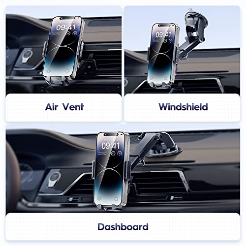 Adjuestable Long Arm: EYEMAY phone mount for car has a 360° rotation ball-joint and telescopic arm, you can adjust best anlgle as you wish. Provide you with safer driving whether you are navigating, or charging. Applicable to all cars, SUVs, trucks, and taxis, Ubers.